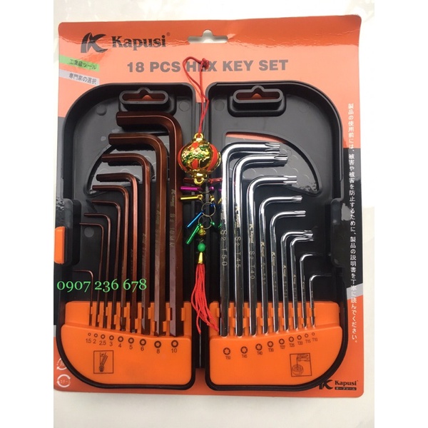 Nhà cửa & Đời sống > Dụng cụ & Thiết bị tiện ích > Dụng cụ > Bộ cờ lê || Bộ Lục Giác, Bộ Hoa Thị, Lục Giác Bông Kapusi Japan 18 Chi TiếtCòn hàng