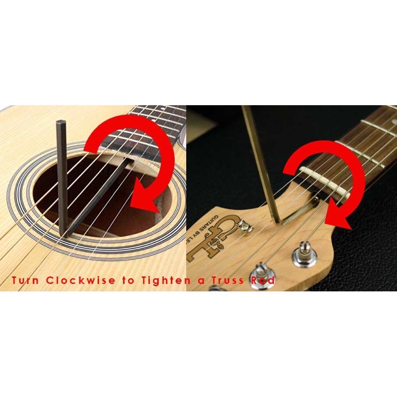 ✅ HƯỚNG DẪN SỬ DỤNG: Cho khớp vào lục giác vào ty đàn nằm dọc cần đàn, nếu action cao ta hạ bằng cách quay lục giác từ trong ra ngoài, nếu action thấp thì làm ngược lại.