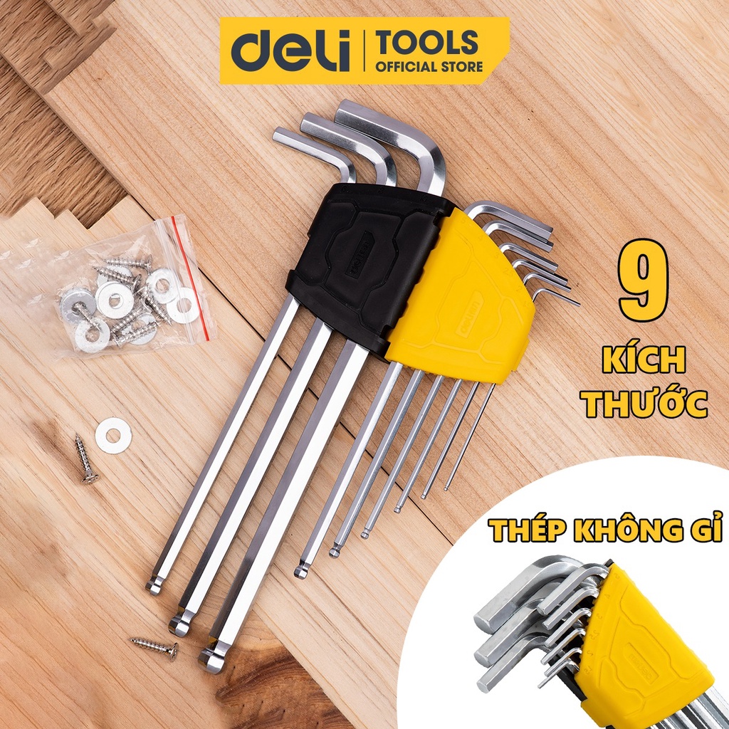 DELI TOOLS OFFICIAL STOREBỘ LỤC GIÁC CHỮ L ĐẦU BI 9 CHIẾC DELI EDL3090