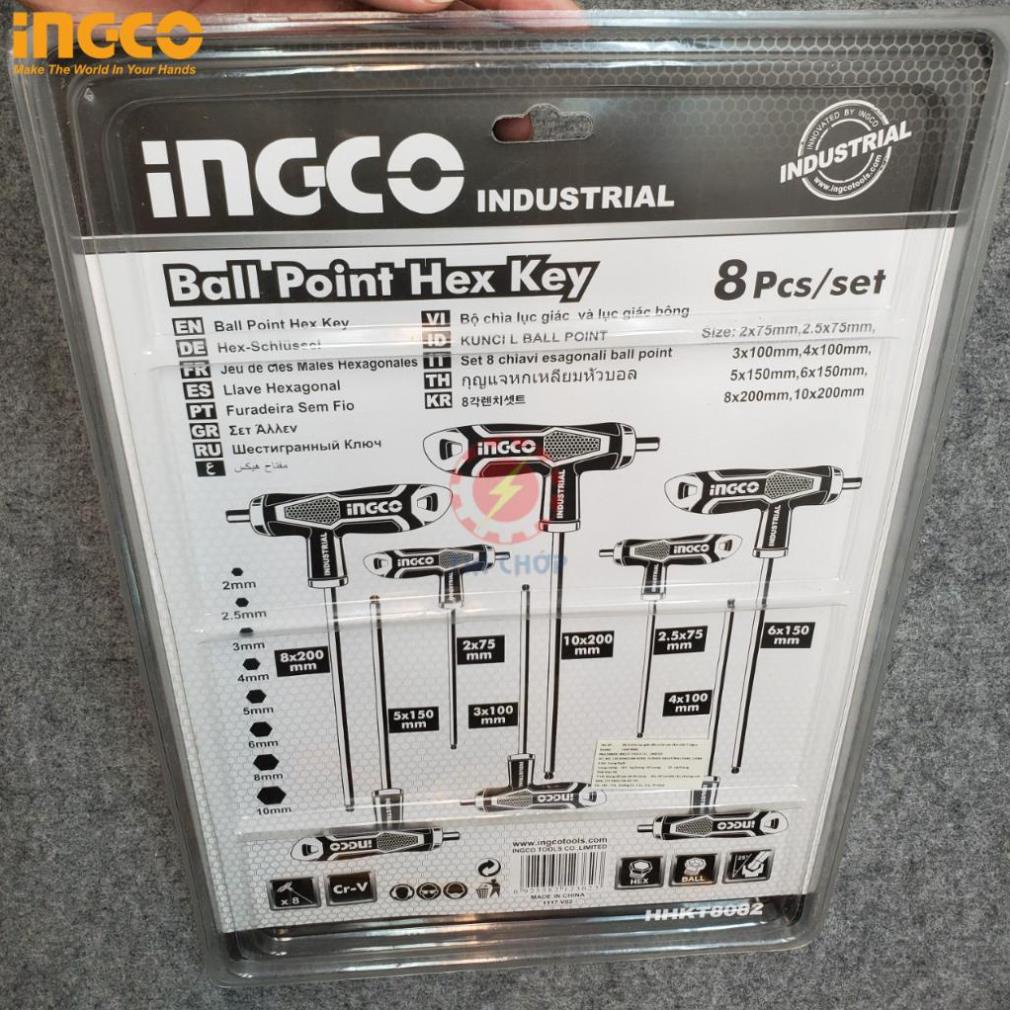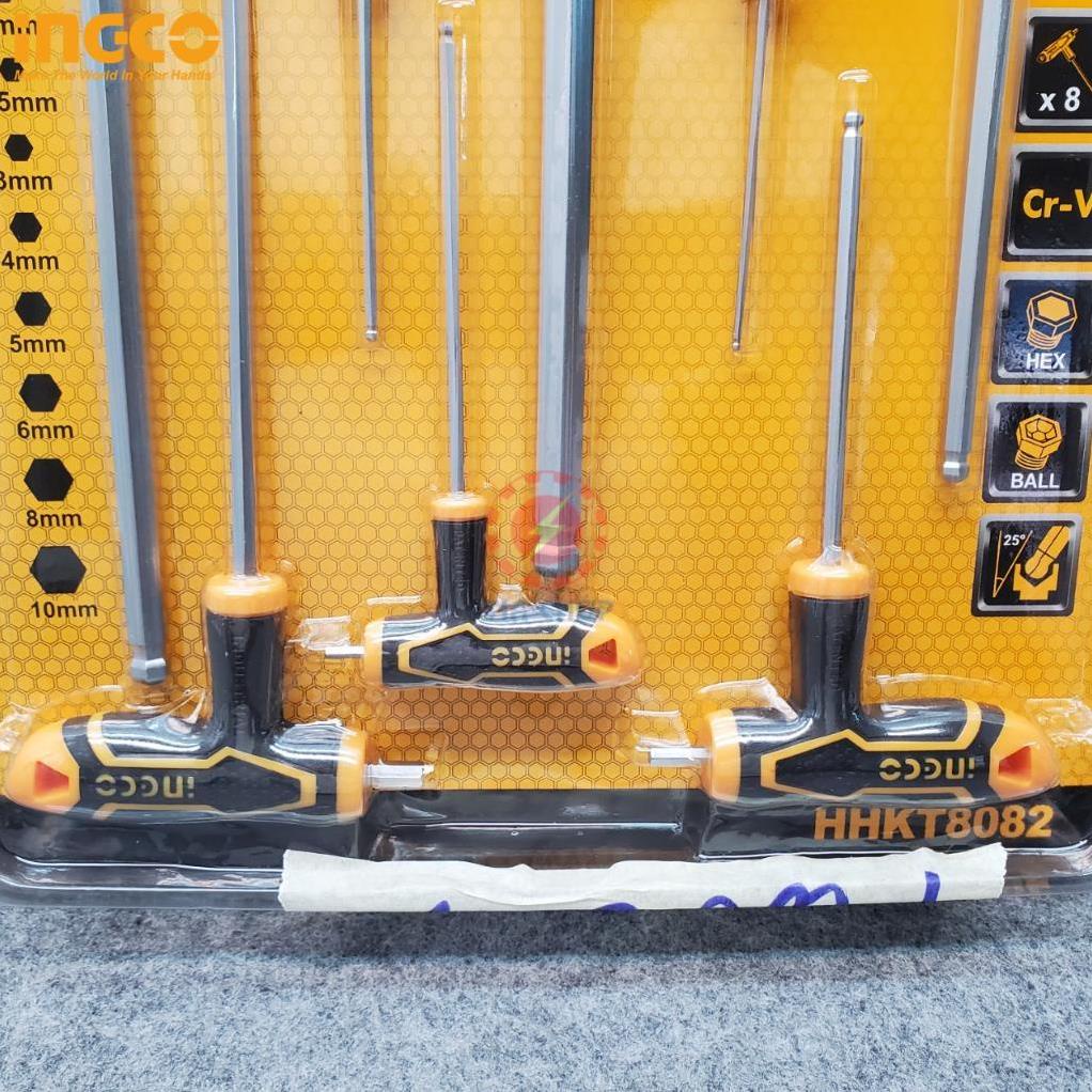 Bộ lục giác chử T đầu bi thép Cr-V iNGCO HHKT8082