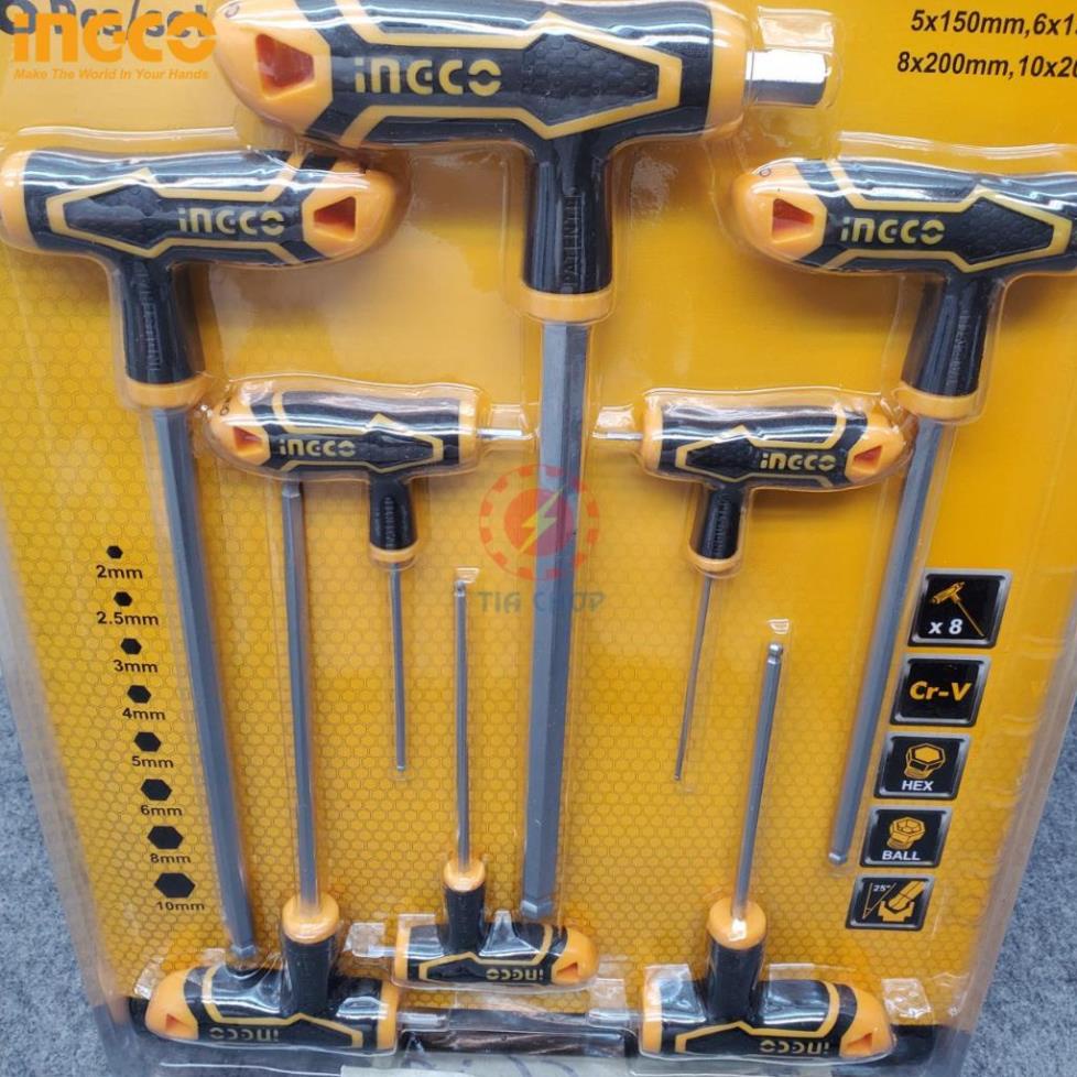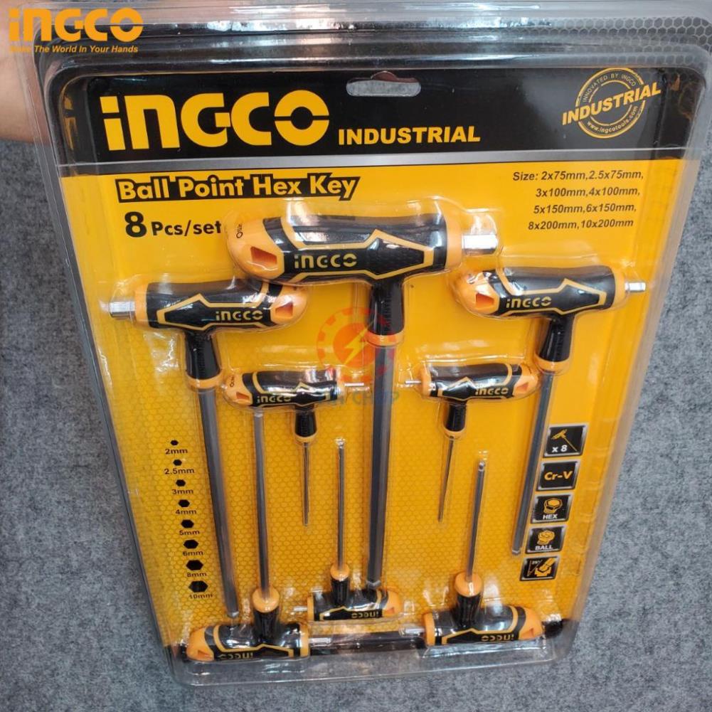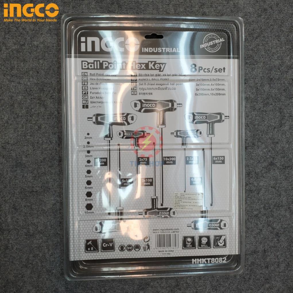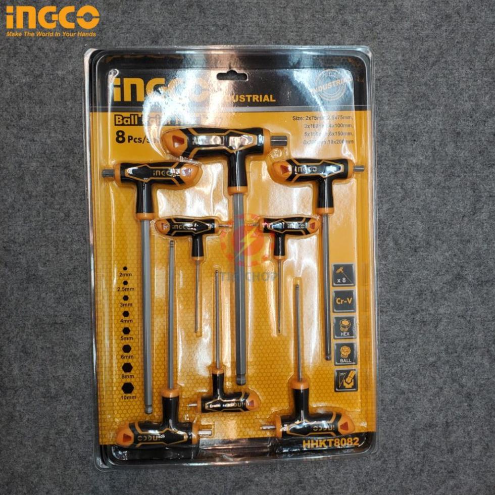 Bộ lục giác chử T đầu bi thép Cr-V iNGCO HHKT8082