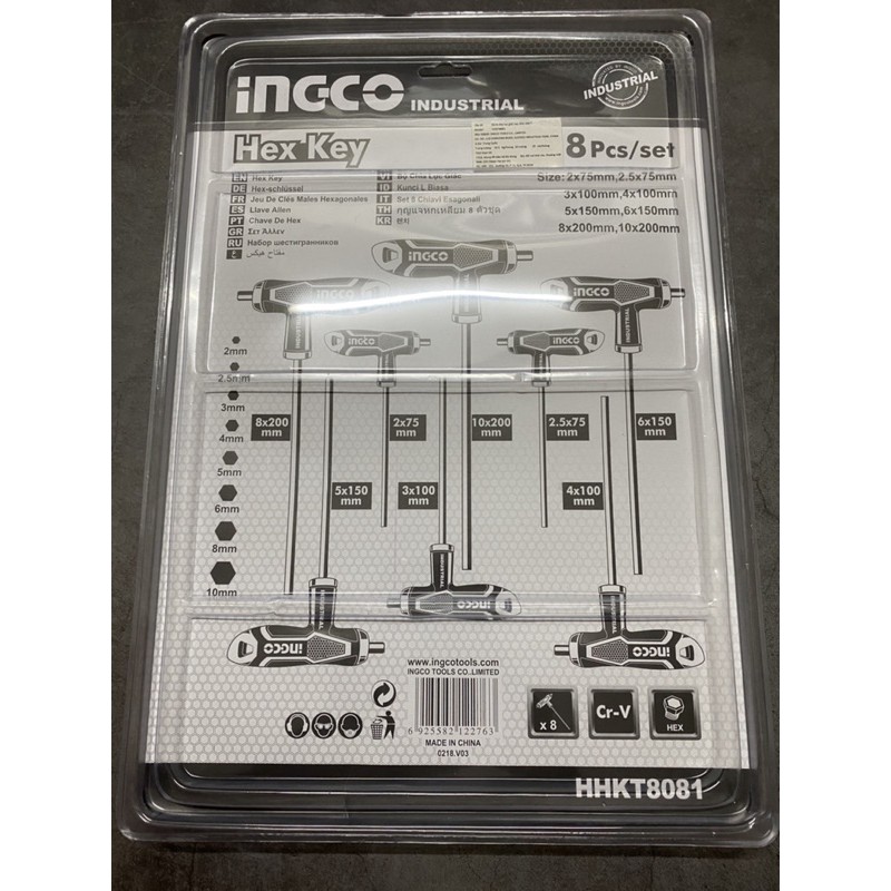 Bộ lục giác chử T thép Cr-V iNGCO HHKT8081