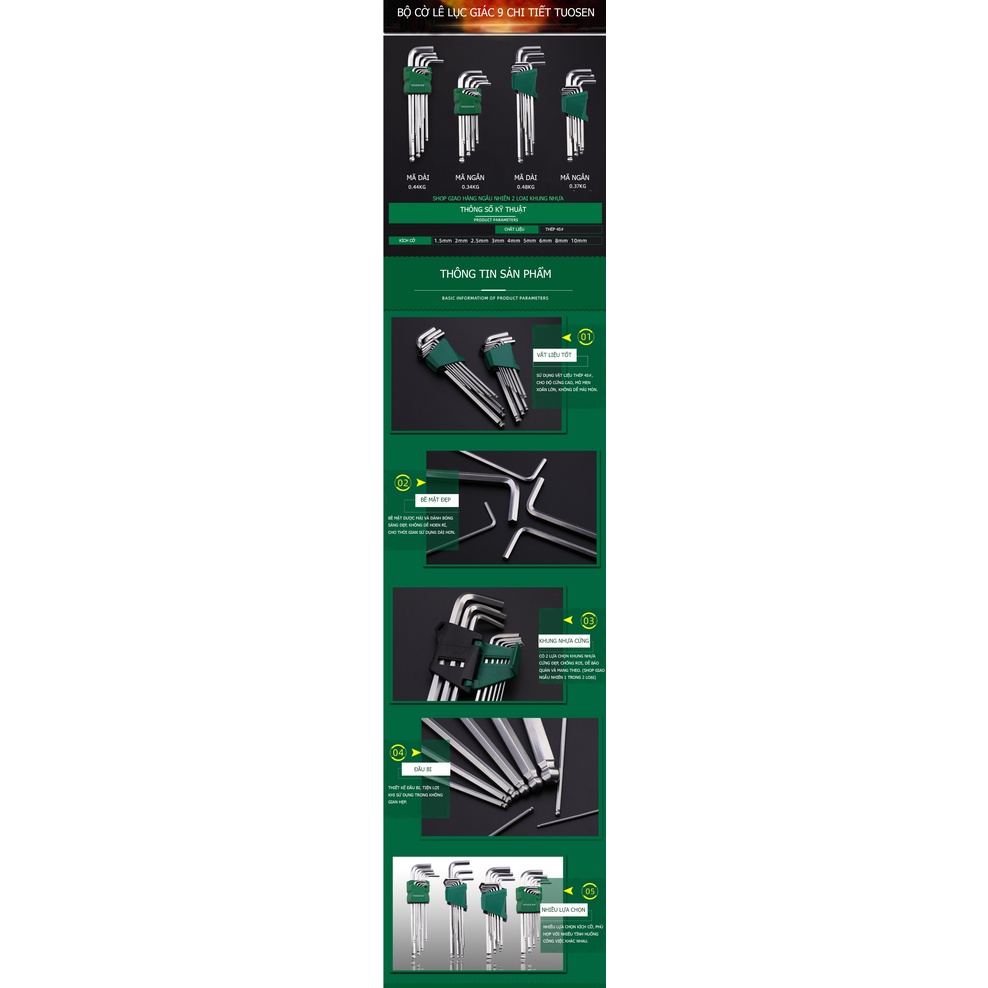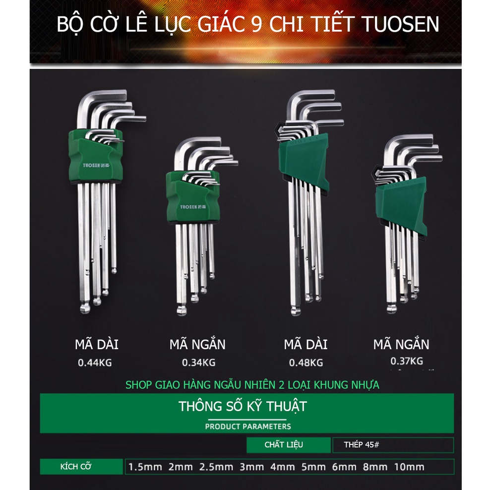 Giới thiệu [Mã 44LIFESALE giảm 10% đơn 99K] Bộ lục giác đầu bi 9 chi tiết, bộ cờ lê lục giác - Một sản phẩm của Tuosen