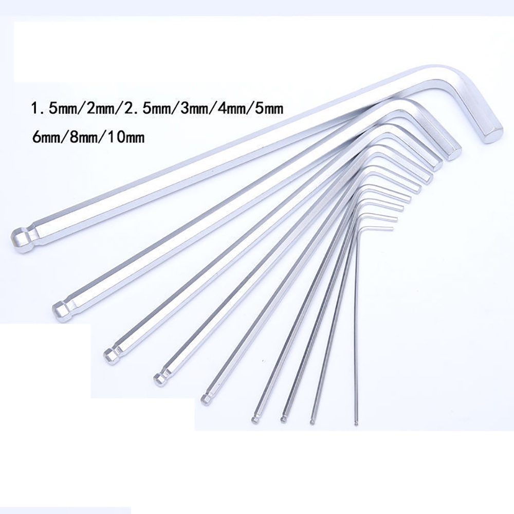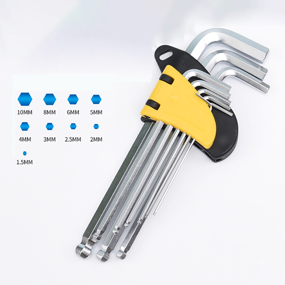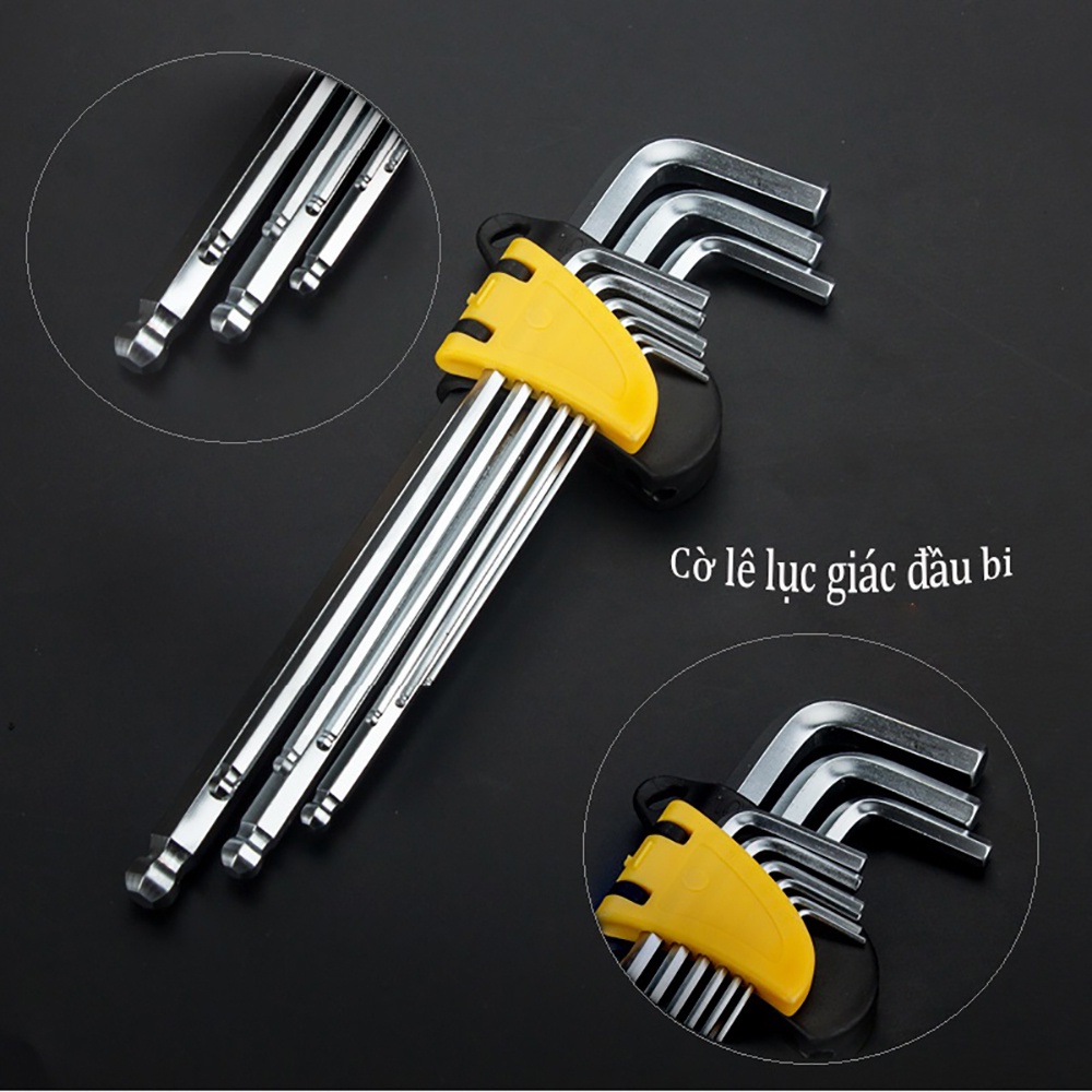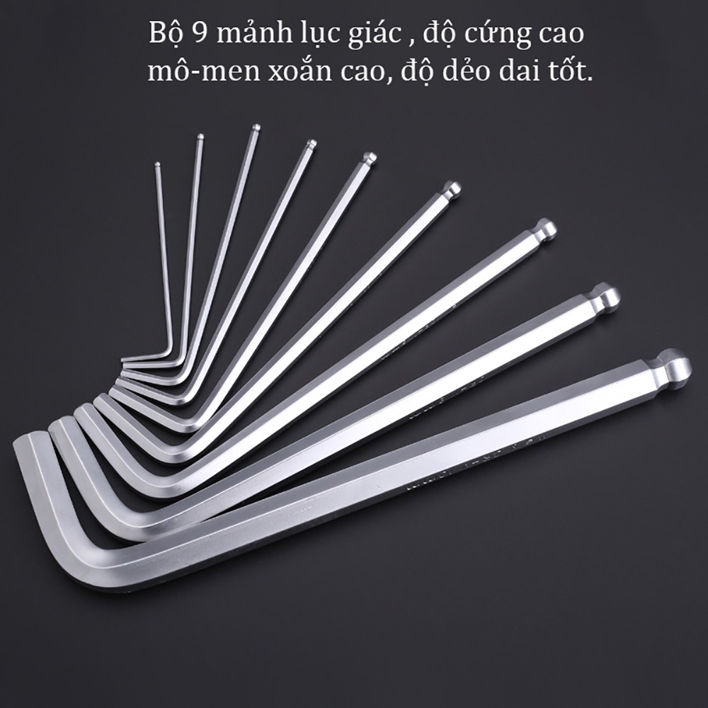 9 chi tiết:1.5mm,2mm,2.5mm,3mm,4mm,5mm,6mm,8mm,10mm phù hợp với hầu hết mọi loại ốc lục giác thông dụng