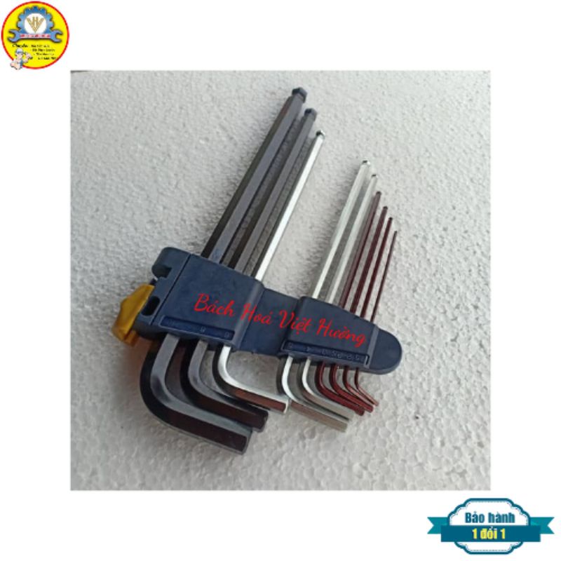-Bộ gồm 9 cây lục giác: 1.5mm, 2mm, 2.5mm, 3mm, 4mm, 5mm, 6mm, 8mm,10mm