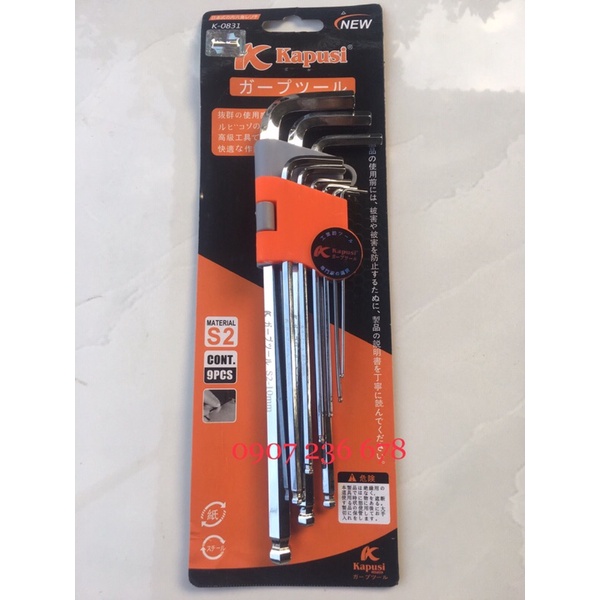 Nhà cửa & Đời sống > Dụng cụ & Thiết bị tiện ích > Dụng cụ > Bộ cờ lê || Bộ Lục Giác Đầu Bi Hãng Kapusi Nhật Bản 9 Cây, Chất Liệu Thép CR-VCòn hàng