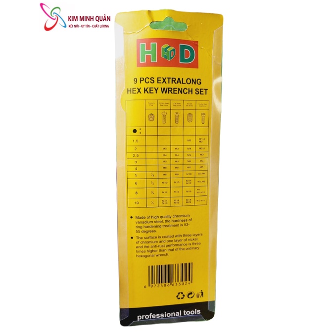 Bộ Lục Giác Đầu Bi Thép Đen 9 Cây HDNhà sản xuất HD