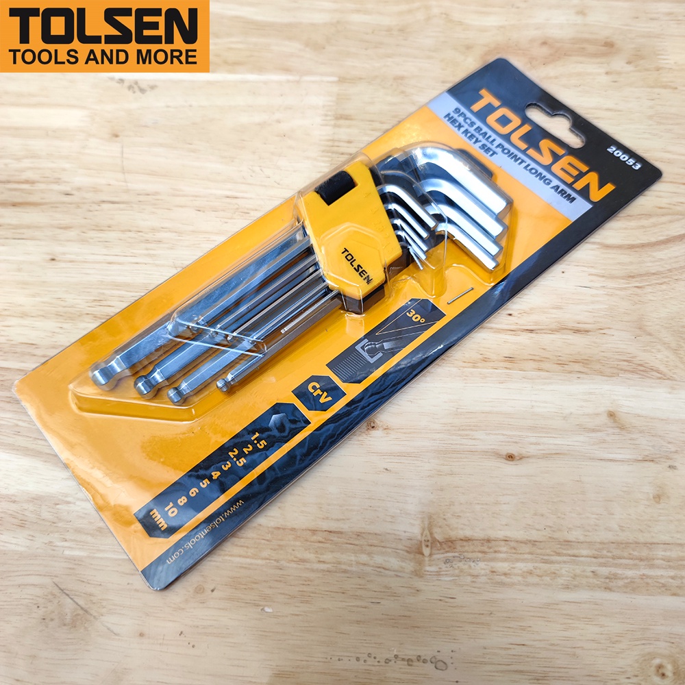 - Lục giác bộ đầu bi Tolsen mã số 20053 bộ lục giác đầu bi 9 cây 1,5/2/2,5/3/4/5/6/8/10mm sử dụng cho việc mở ốc đầu lục giác vv...