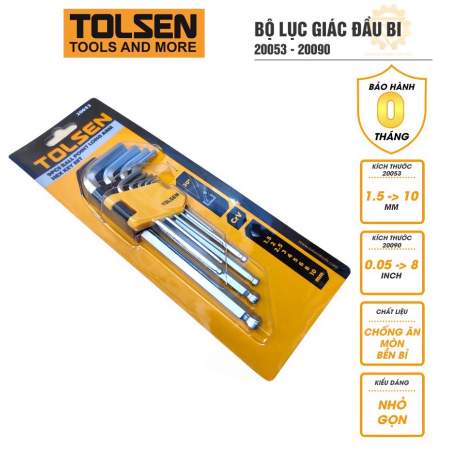 Giới thiệu Lục giác đầu bi TOLSEN hợp kim thép chống gỉ đủ size 20053 9 kích cỡ, 20090 13 kích cỡ dụng cụ sữa chữa