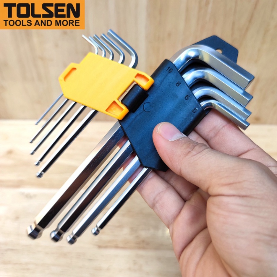 - Lục giác bộ đầu bi Tolsen mã số 20053 bộ lục giác đầu bi 9 cây 1,5/2/2,5/3/4/5/6/8/10mm sử dụng cho việc mở ốc đầu lục giác vv...