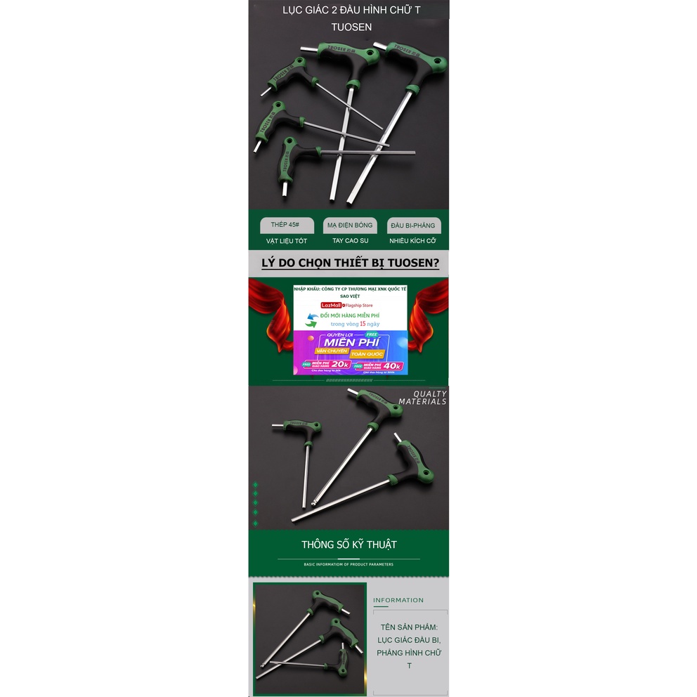 Nhà cửa & Đời sống > Dụng cụ & Thiết bị tiện ích > Dụng cụ > Bộ cờ lê || Lục giác đầu phẳng, lục giác đầu tròn hình chữ T - TUOSENCòn hàng