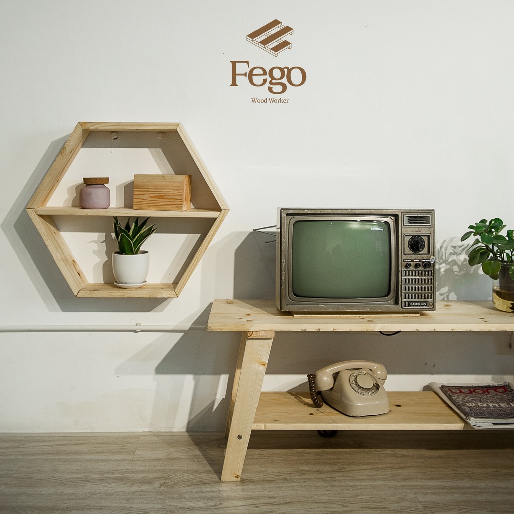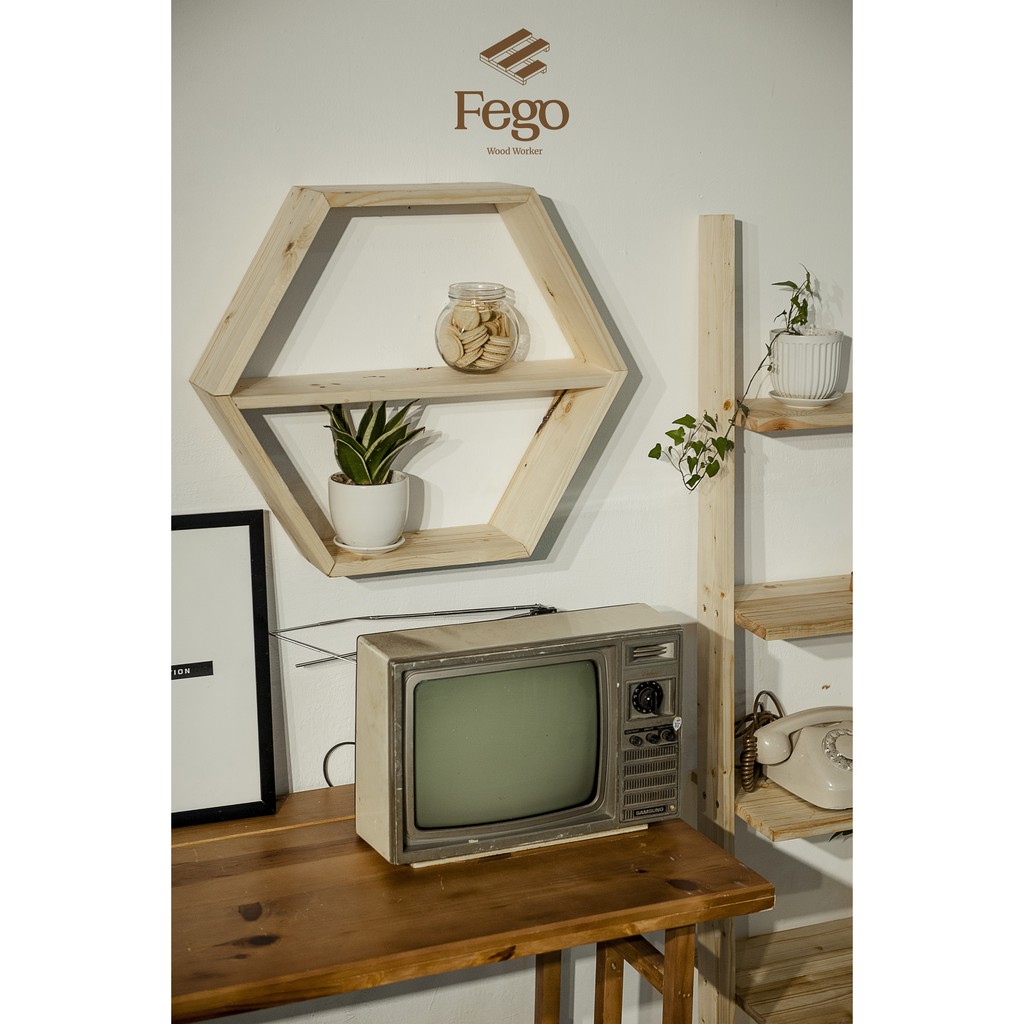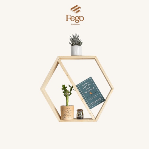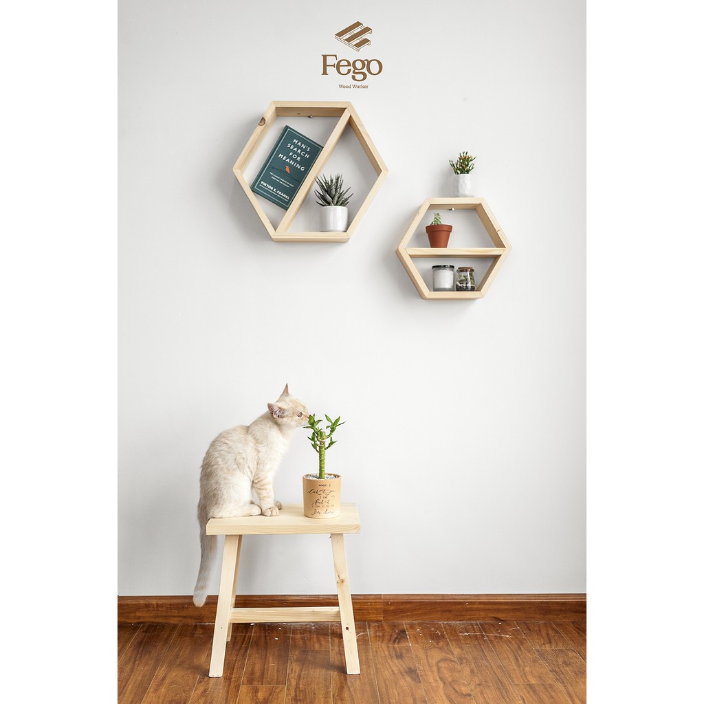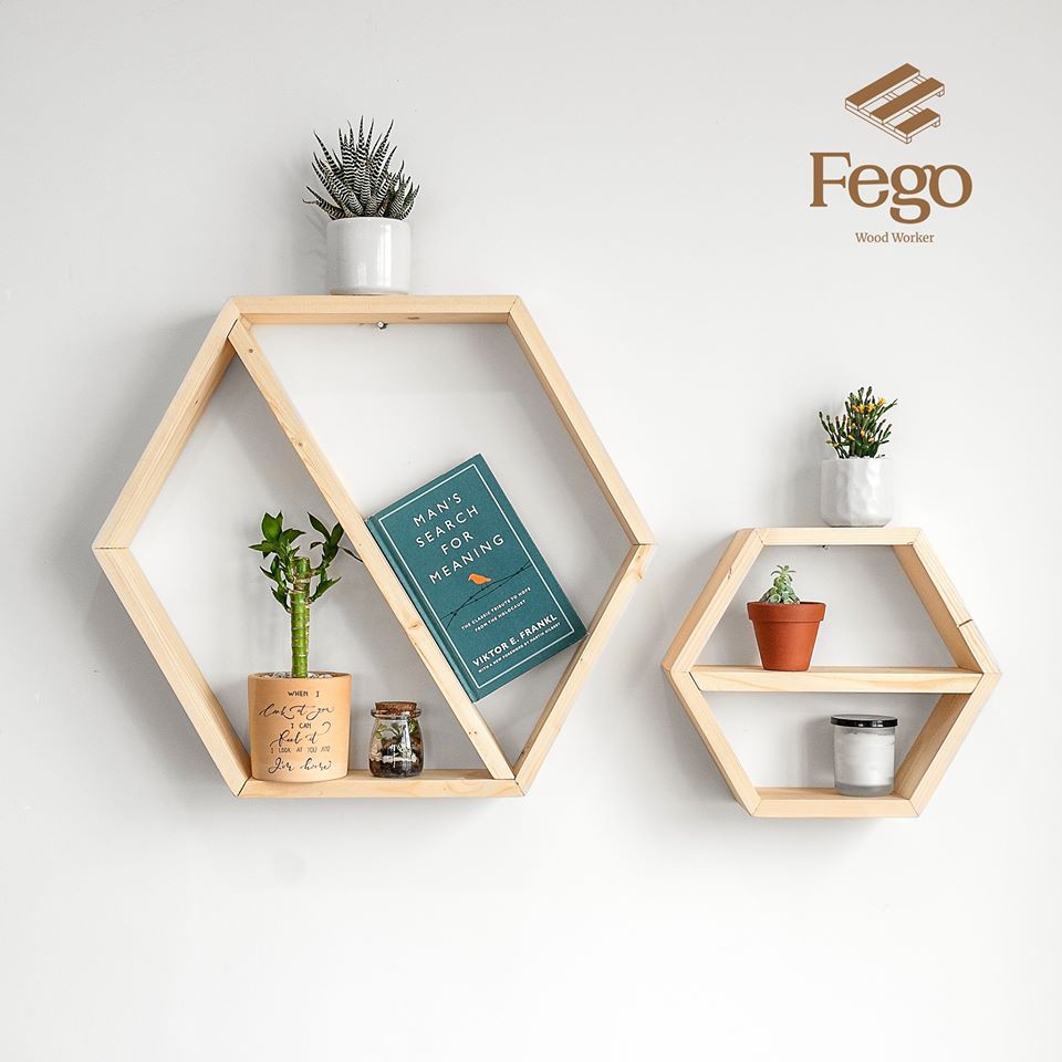 Nhà cửa & Đời sống > Nội thất > Kệ & Giá || [Mã LIFEMALL253 giảm 100K đơn 250K] Lục giác gỗ treo tường trang trí Lục giá Decor gỗ thông FegoCòn hàng
