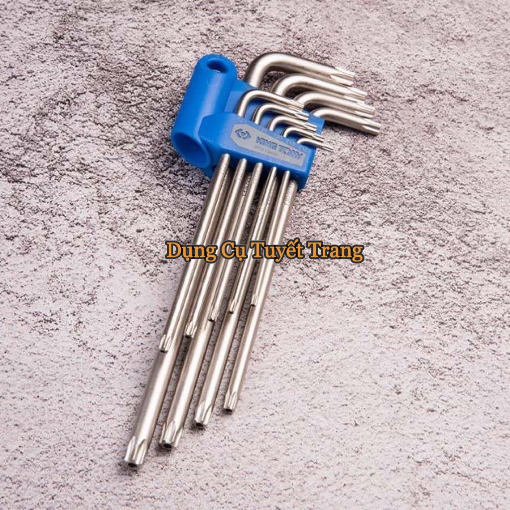 Và chúng tôi xin giới thiệu với bạn bộ lục giác 9 cây đầu bông mai với kích thước từ T10 đến T50. Bộ lục giác này được chế tạo bằng thép S2, là loại thép chuyên dùng để chế tạo lục giác, vì có độ bền cao, chịu lực tốt.