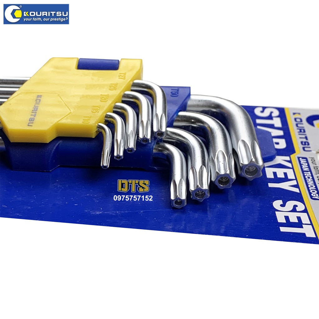 Bộ lục giác hoa thị dài có lỗ Nhật Bản Kouritsu T04306 9 chi tiết T10 - T50 (Bộ lục giác sao)