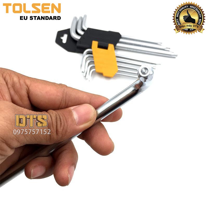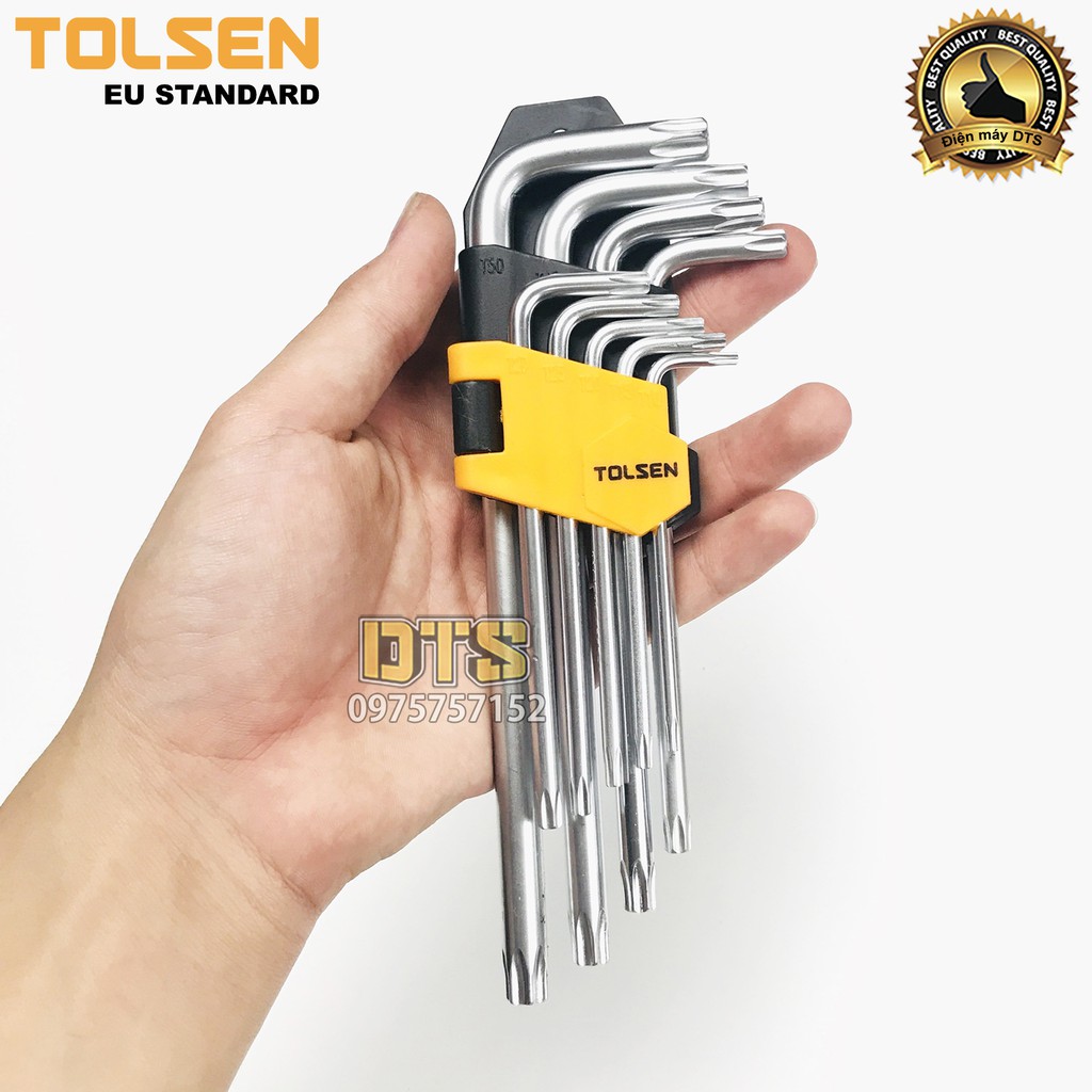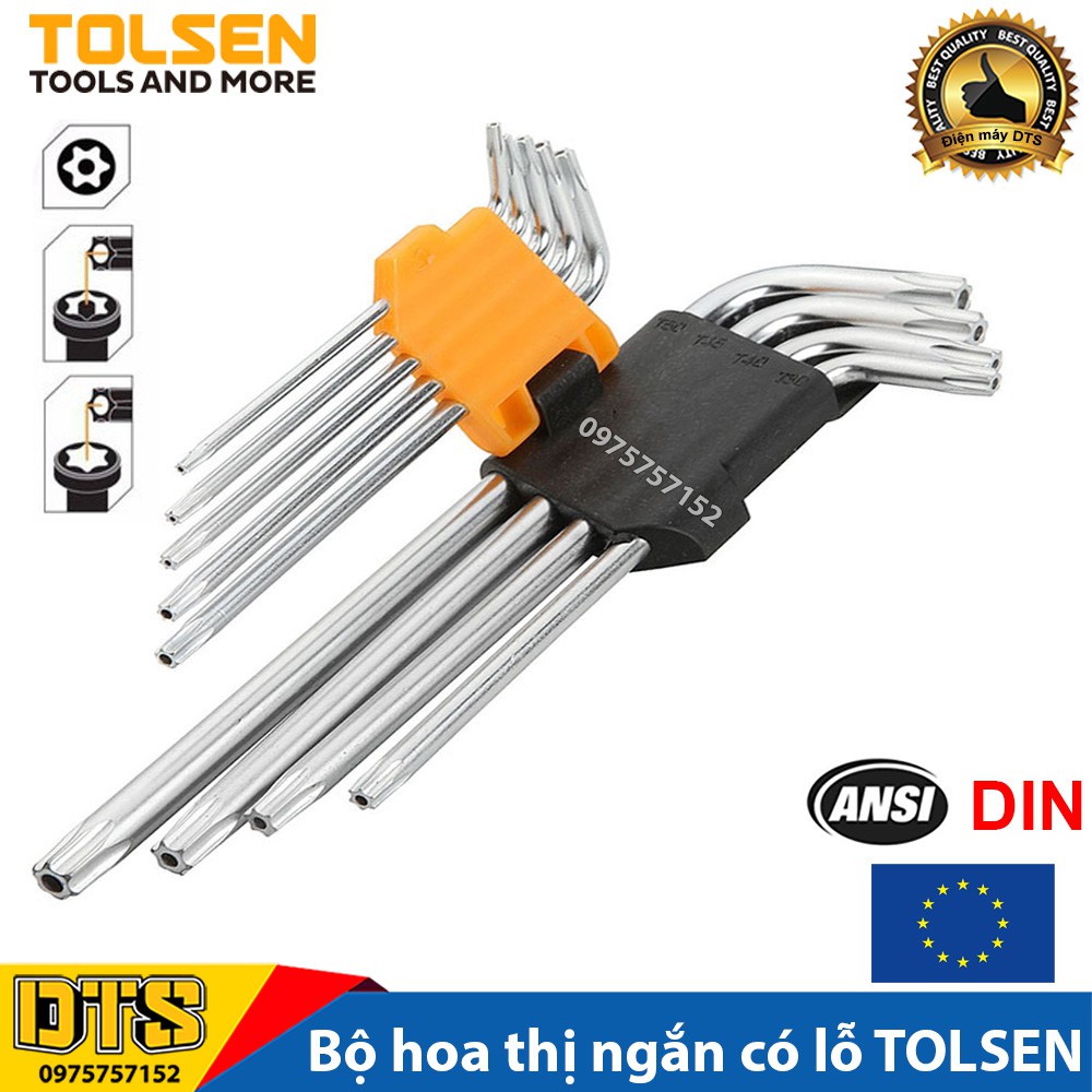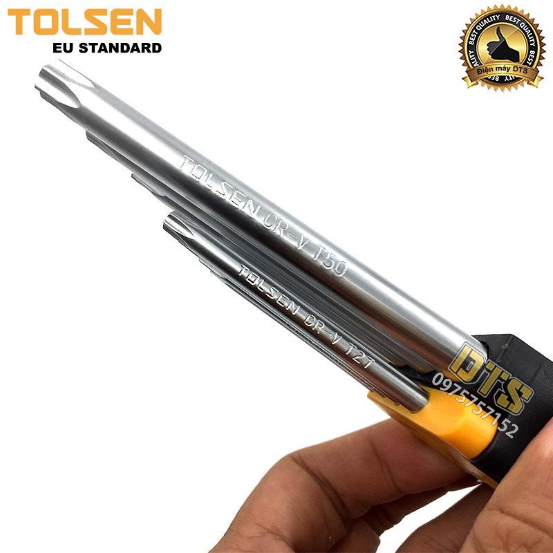 Bộ lục giác hoa thị ngắn có lỗ TOLSEN 9 chi tiết T10 - T50, bộ lục giác bông thép CrV - Tiêu chuẩn xuất khẩu Châu Âu