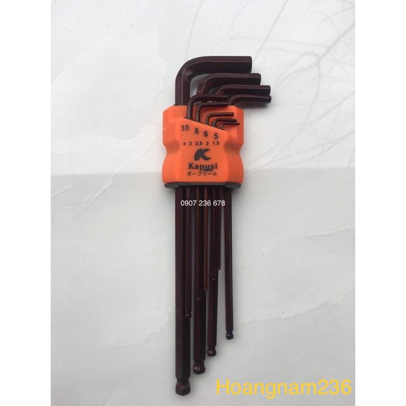 Nhà cửa & Đời sống > Dụng cụ & Thiết bị tiện ích > Dụng cụ > Bộ cờ lê || Bộ Lục Giác Thép Nâu Đầu Bi Hãng Kapusi Nhật Bản 9 Cây Chữ L 1.5-10mm, Chất liệu thép CR-V6150Còn hàng