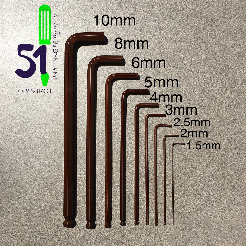 - Kích thước: 1.5mm, 2mm, 2.5mm, 3mm, 4mm, 5mm, 6mm, 8mm, 10mm