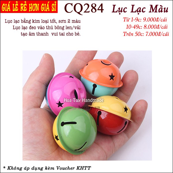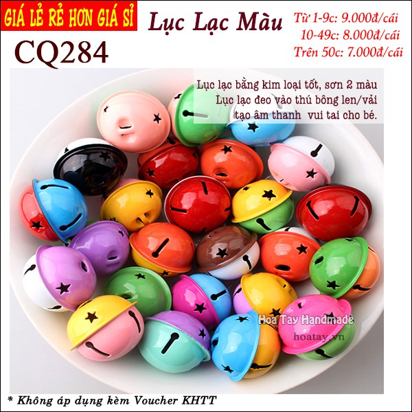 Lục lạc bằng kim loại tốt, sơn 2 màuLục lạc đeo vào thú bông len/vảitạo âm thanh vui tai cho bé.Lục lạc có thể gắn trực tiếp trên thanh cầm tay