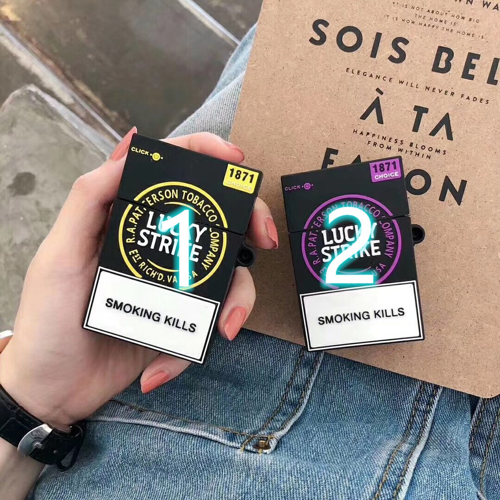 Giới thiệu Lucky Strike Fashion Square AirPods pro Case Black and purple 3D Silicone AirPod1 Case Apple AirPods2 Protective