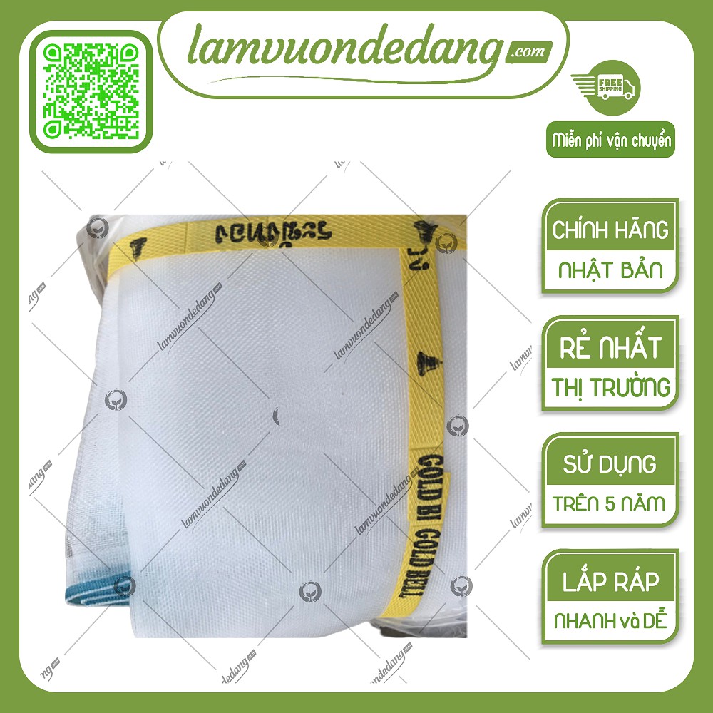 Công dụng: Cản phá côn trùng ,chắn được ngay cả các loại côn trùng nhỏ ví dụ như con bọ nhảy, bọ phấn,..vv.. nhằm bảo vệ cây khỏi tác hại của côn trùng ruồi nhặng.Kích thước:2 loại: 2m x 5m , ,, 2m x 10m