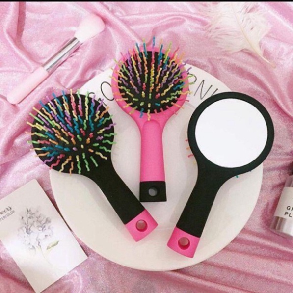 Gương kèm lược cầm tay mini- 1 mặt lược cấu trúc bàn chải S-curled cao cấp chống rụng tóc, gỡ rối siêu đỉnh.