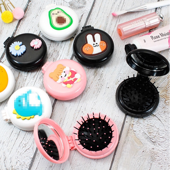 Giới thiệu Lược gấp kèm gương mini dùng để trang điểm, nhiều họa tiết hoạt hình xinh xắn