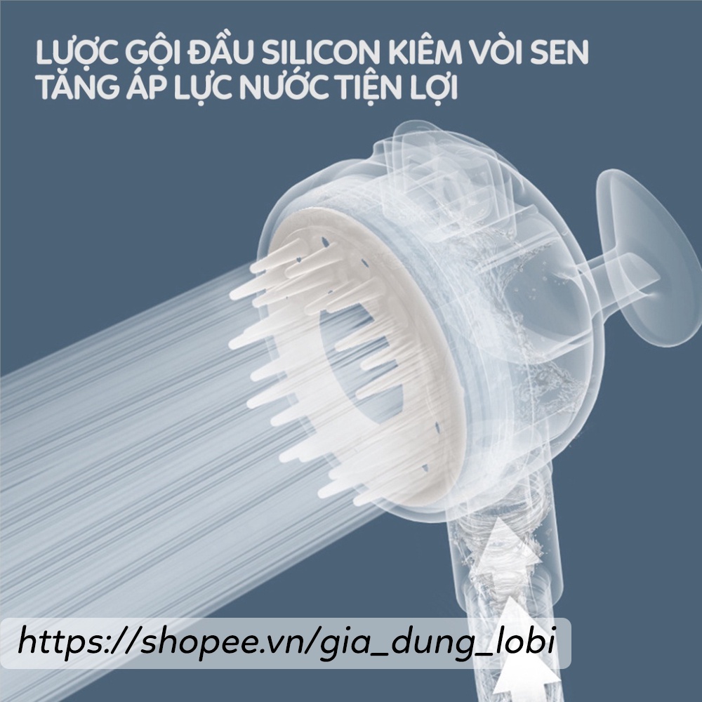 Lược gội đầu silicon massage đầu kiêm vòi sen tăng áp có nút chỉnh chế độ dong nước thông minh