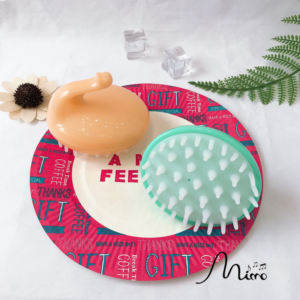 Lược gội đầu vừa làm sạch tẩy tế bào kiêm massage da đầu hình tròn 2 màu xanh và vàng
