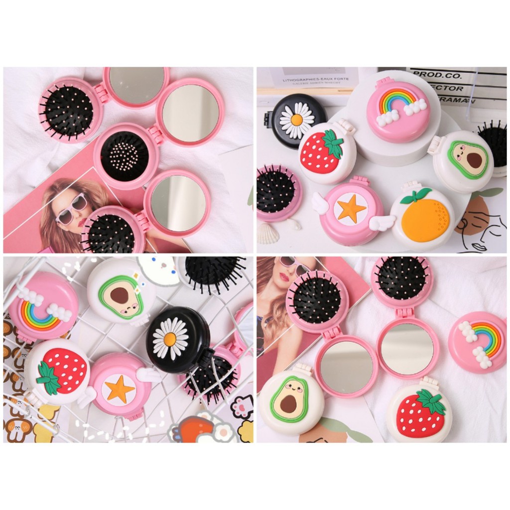 Lược kèm gương 2 trong 1 gấp gọn cute tiện lợi