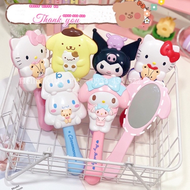 Giới thiệu Lược massage túi khí + tay cầm gương trang điểm Hello Kitty