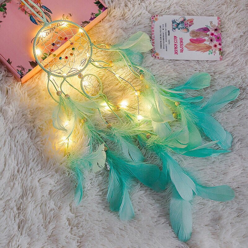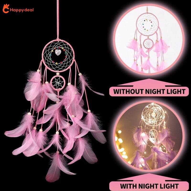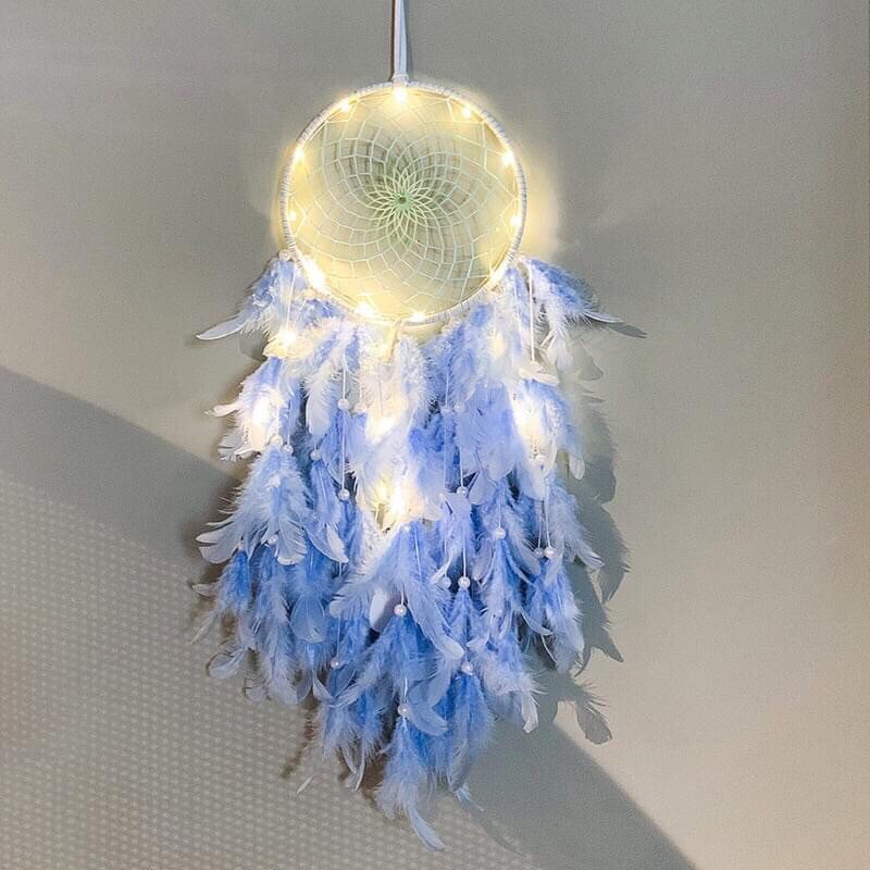 Lưới giữ giấc mơ Dreamcatcher Có đèn Led – Đính lông vũ