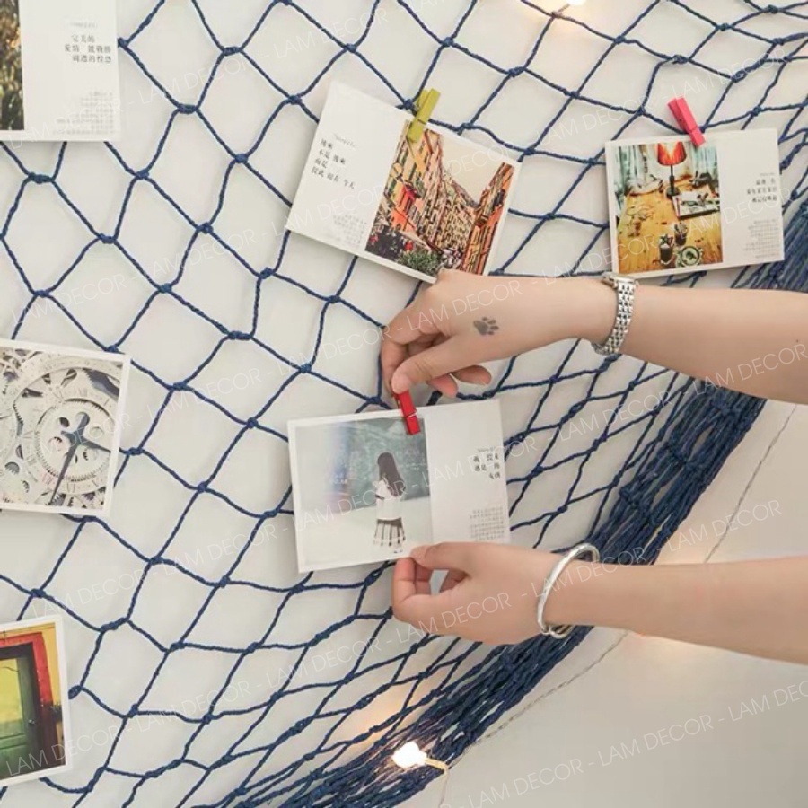 Lưới biển trang trí kèm sò biển tại Lam Decor có 2 màu: Xanh va trắng.Kích thước 1mx2m