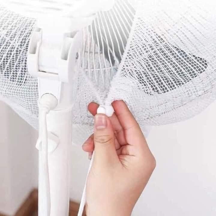 - Thiết kế thông minh với băng thun giúp cố định, để lưới ôm sát lồng quạt cùng chất liệu vải lưới nên không gây cản trở luồng gió mát từ quạt.