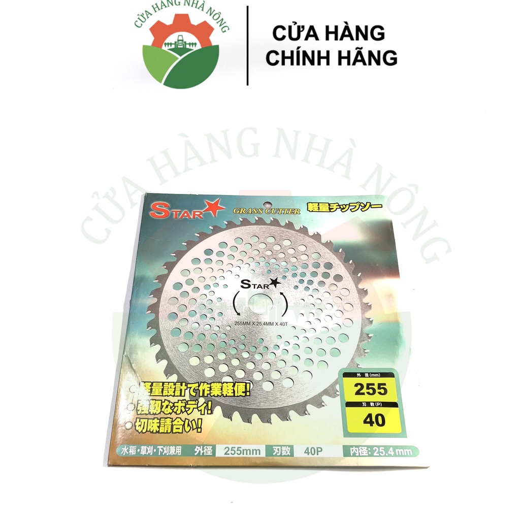 Nhà cửa & Đời sống > Làm vườn > Máy cắt cỏ, dụng cụ cắt cỏ || Lưỡi cắt cỏ hợp kim STAR 255mm 40 răng mạ hợp kimCòn hàng