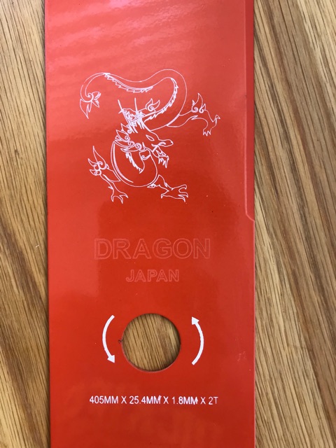 Lưỡi cắt cỏ Dragon là loại dao cắt cỏ hình chữ nhật vuông (có loại hình thức vạt xéo 2 đầu dao). Dao được làm từ chất liệu thép tốt. Lưỡi thép cứng có thể phát hoặc cắt bụi rậm thân lớn không gây oằn cong vênh dao.