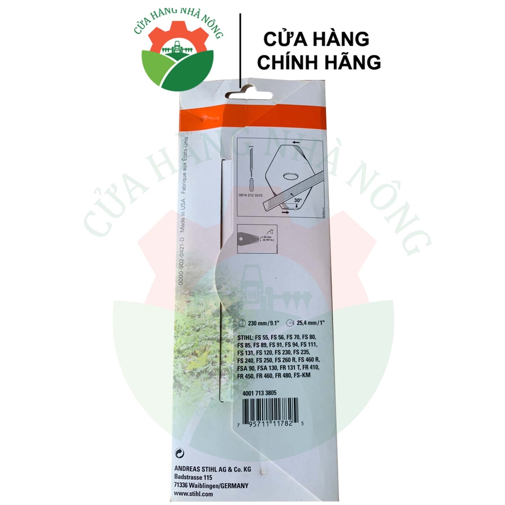 Lưỡi cắt cỏ STIHL 230 x 25,4 mm chính hãngCam kết phụ tùng zin chính hãng 100% - được phân phối bởi CỬA HÀNG NHÀ NÔNG - Đại lý chính thức của STIHL khu vực Tây Nguyên. Bảo đổi trả hoàn tiền gấp 10 lần nếu quý khách hàng phát hiện sản phẩm do CỬA HÀNG NHÀ NÔNG phân phối không phải hàng chính hãng như đã cam kết.