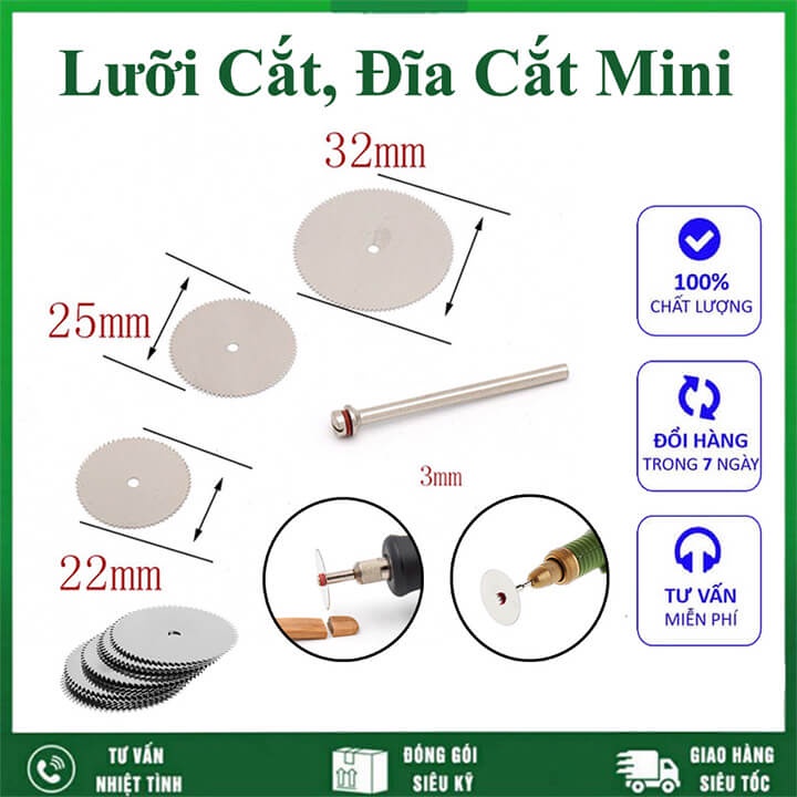 Lưỡi cắt, đĩa cắt mini cán 3mm đa năng dùng cho máy khoan cầm tay, lưỡi cưa gỗ gắn máy màiQuy cách sản phẩm: