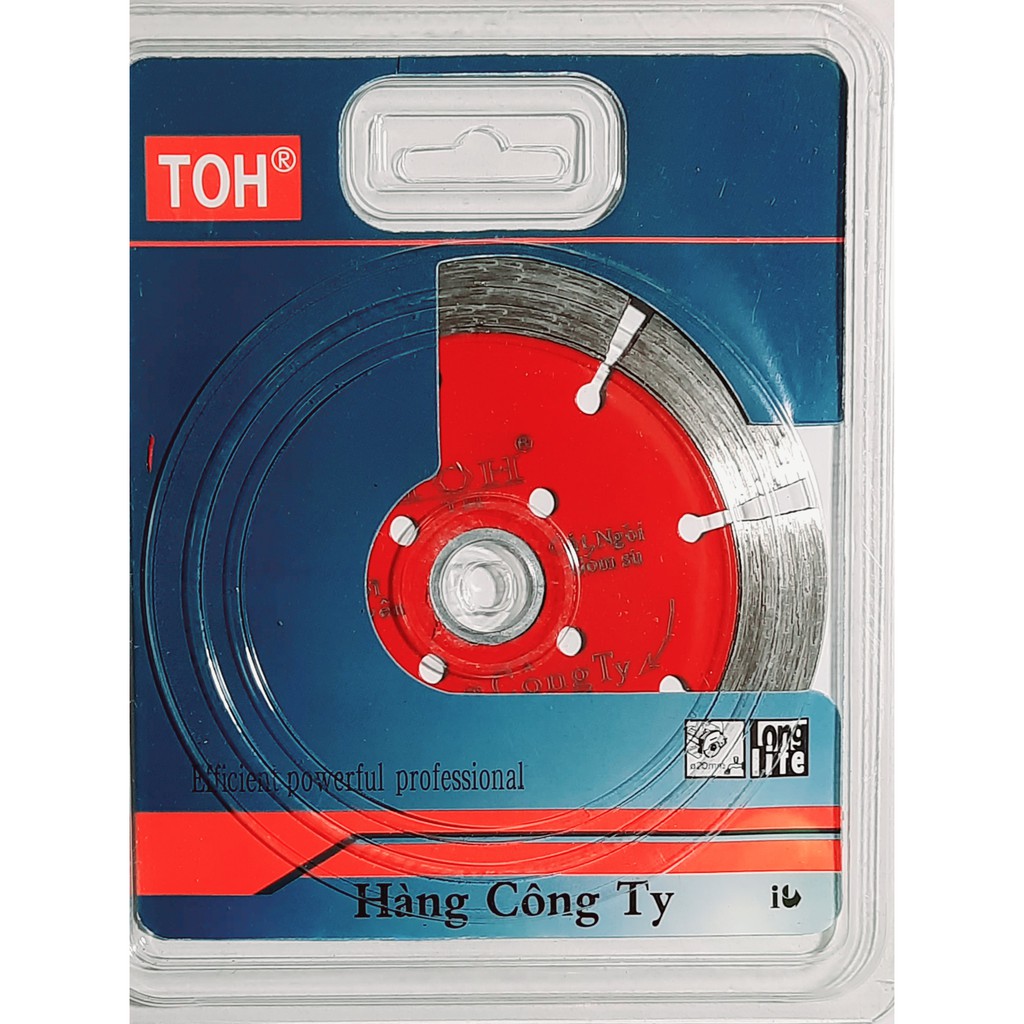 Lưỡi cắt gạch, đá TOH: lưỡi cắt được cấu tạo bởi 2 phần. Phần thân được làm từ cốt thép Mn tiêu chuẩn, phần lưỡi cắt được làm từ hỗn hợp hạt kim cương nhân tạo và bột kim loại cùng chất kết dính đặc biệt được ép nóng nên lưỡi cắt rất cứng. Có thể cắt được các loại đá, bê tông, granit....Thông sô: 114mm