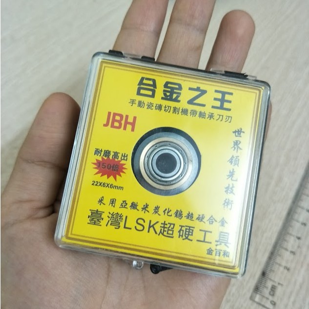 Sản phẩm Lưỡi cắt gạch, lưỡi cắt gạch bàn đẩy hàng Trung Quốc xuất khẩu bao gồm: 1 hộp đựng + 1 lưỡi + 1 tấm xốp chống xước- Đường kính ngoài của lưỡi 22mm + lỗ cốt 6mm+chiều dày vòng bi của lưỡi 6mm