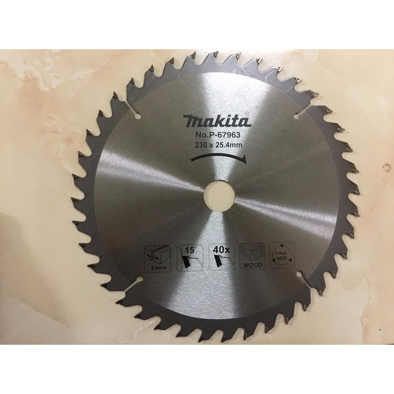 Lưỡi cưa gỗ -Lưỡi cắt gỗ Makita đường kính 230mm - 40 răng cưaLưỡi cắt gỗ Makita được thiết kế bằng chất liệu cao cấp và gia công đặc biệt cho khả năng hoạt động mạnh mẽ tạo độ rắn chắc, sắc bén và độ bền tuyệt đối cho sản phẩm. Đây chắc chắn sẽ là dụng cụ hỗ trợ đắc lực phục vụ các công việc của bạn được hiệu quả hơn rất nhiều.