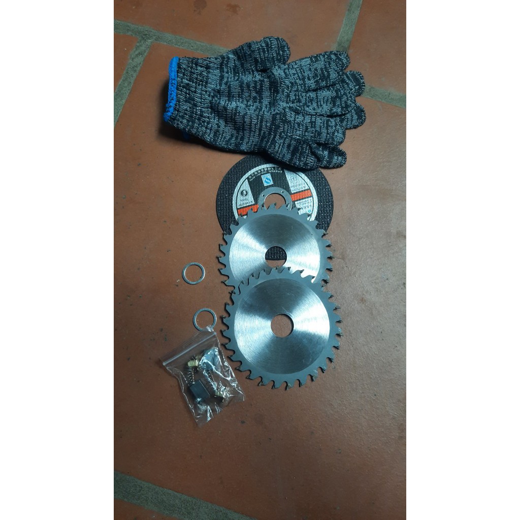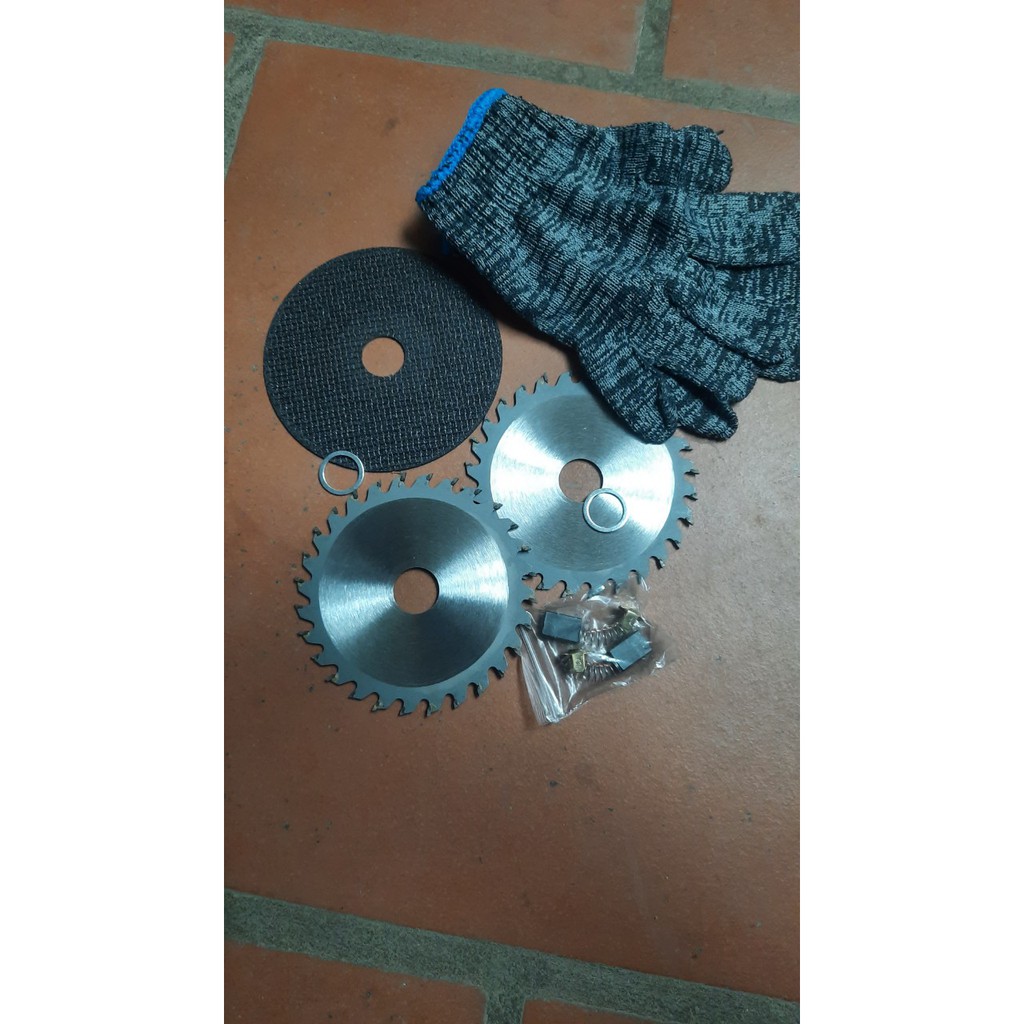_loại 2 :com bo 2 lưỡi cắt gỗ+1 lưỡi cắt sắt+1 đôi gang tay+2 cái chổi than