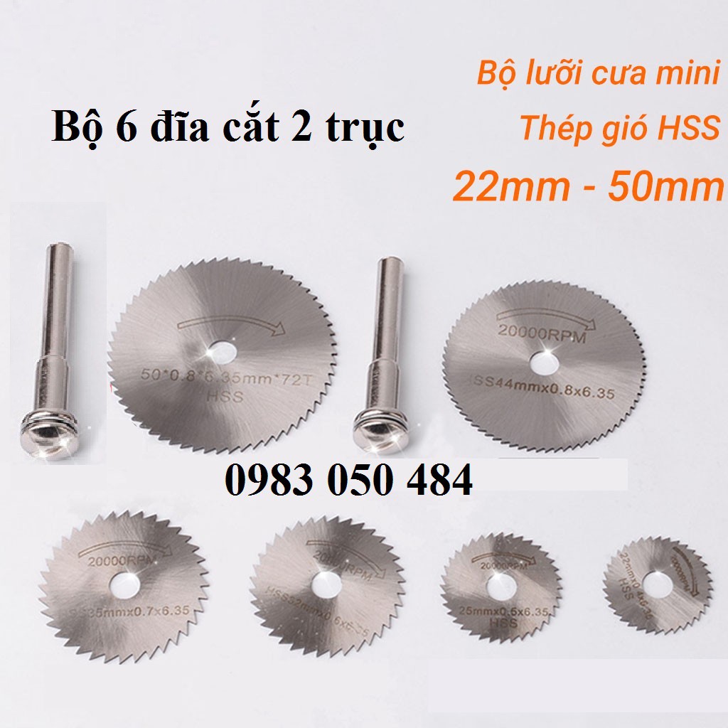 Nhà cửa & Đời sống > Dụng cụ & Thiết bị tiện ích > Dụng cụ > Cưa, máy cắt & máy mài || lưỡi cắt gỗ mini cho máy khoan - đĩa cắt gỗ mini (6 đĩa cắt + 2 trục)Còn hàng