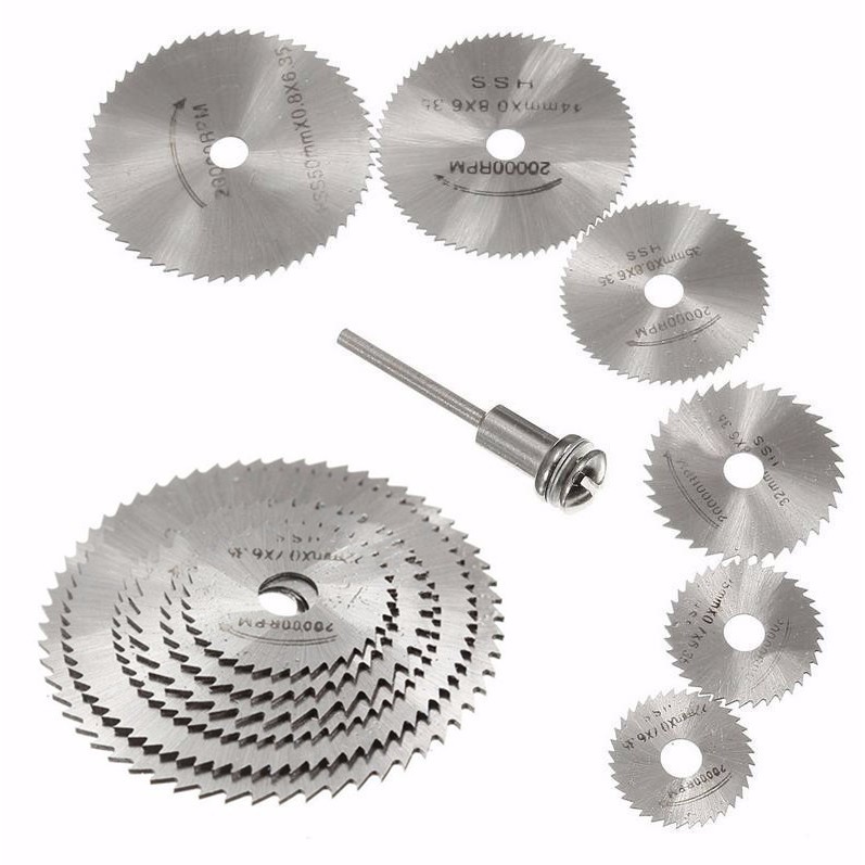 Bộ Sản Phẩm Bao Gồm 6 Lưỡi Cắt Mini KÍch Thước Từ 25 - 50mm dày 0.8mmvà 1 trục giữ lưỡi cắt cốt 3mm sử dụng cho đầu măng ranh