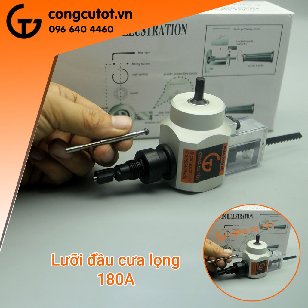 Đầu cưa lọng, đầu cắt tôn 180A là phụ kiện khá phổ biến với 2 chức năng chuyển từ máy khoan sang đầu cưa lọng và thành kít cắt tôn. Khi sử dụng lâu dài thì đầu lưỡi cưa, đầu cắt tôn sẽ bị mòn và hỏng. Vì vậy Lưỡi cắt tôn của đầu cưa lọng 180A là phụ kiện thay thế không thể thiếu khi sử dụng.Lưỡi cắt tôn thay thế cho đầu cưa lọng gắn máy khoan