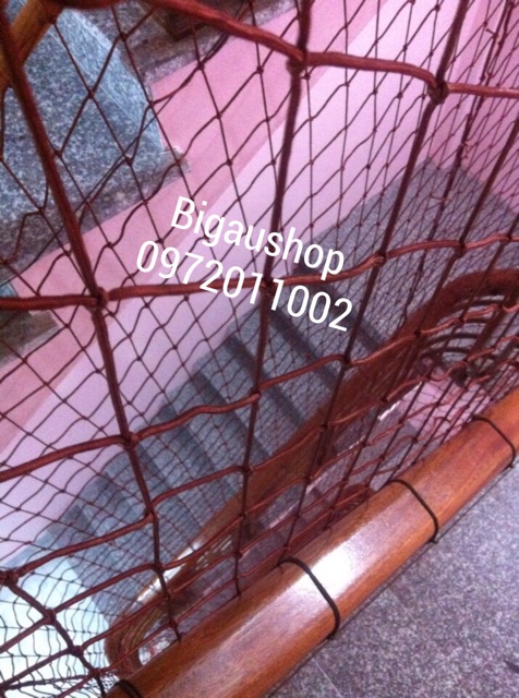 Lưới cầu thang nâu sợi sịnChất liệu sợi săn chắc chịu lực tốt và không bai dão theo thời gian