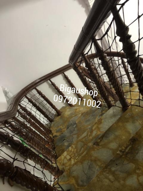 Giới thiệu Lưới chắn cầu thang sợi nâu dù sịn(1 bộ:80cmx10m tặng dây buộc)