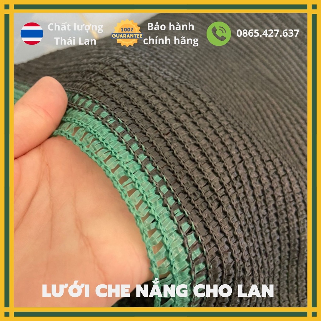 Lưới che nắng Thái Lan, lưới lan khổ rộng 2m độ phủ 50%, 60%, 70% 80% màu đen viền xanh bán theo mét tới.Lưới sản xuất công nghệ Thái Lan chất lượng rất tốt . Nguyên liêu 100% từ hạt nhựa nguyên sinh không pha tái chế.