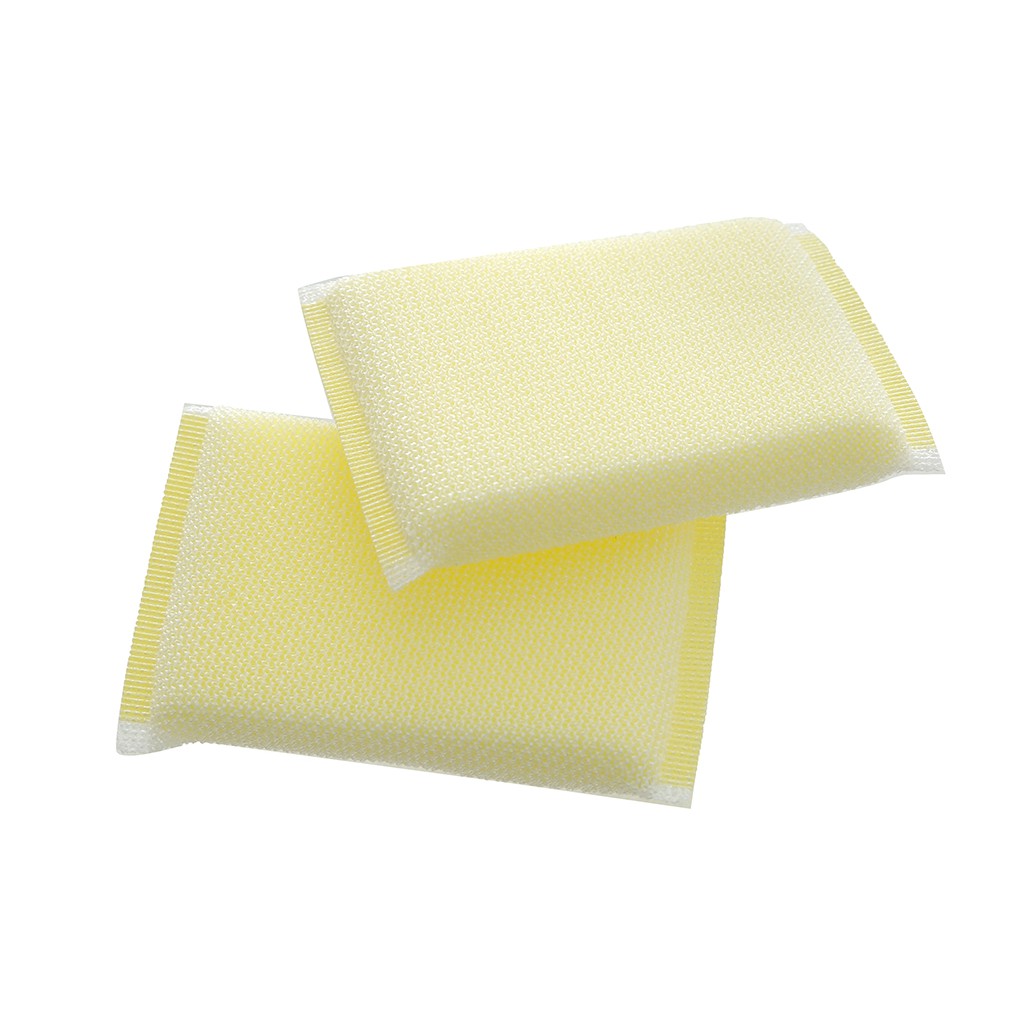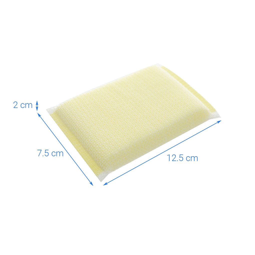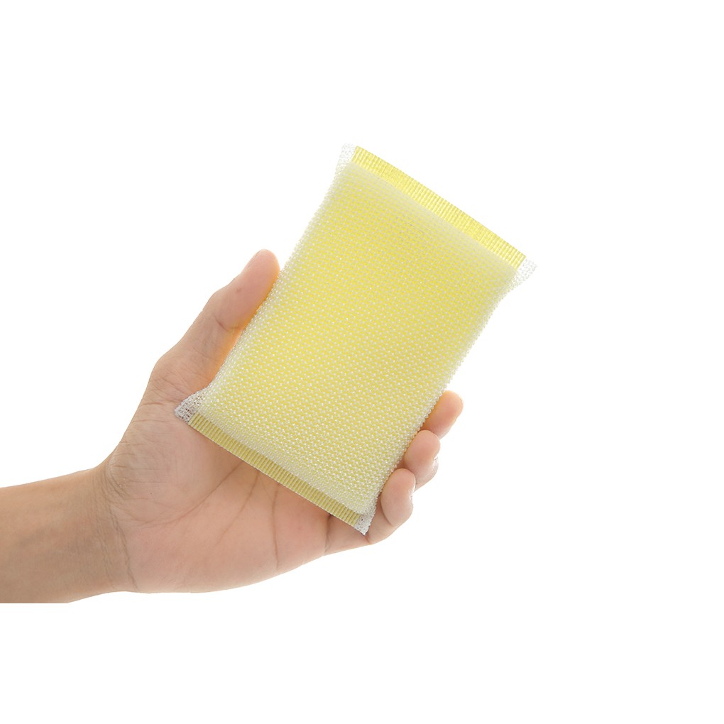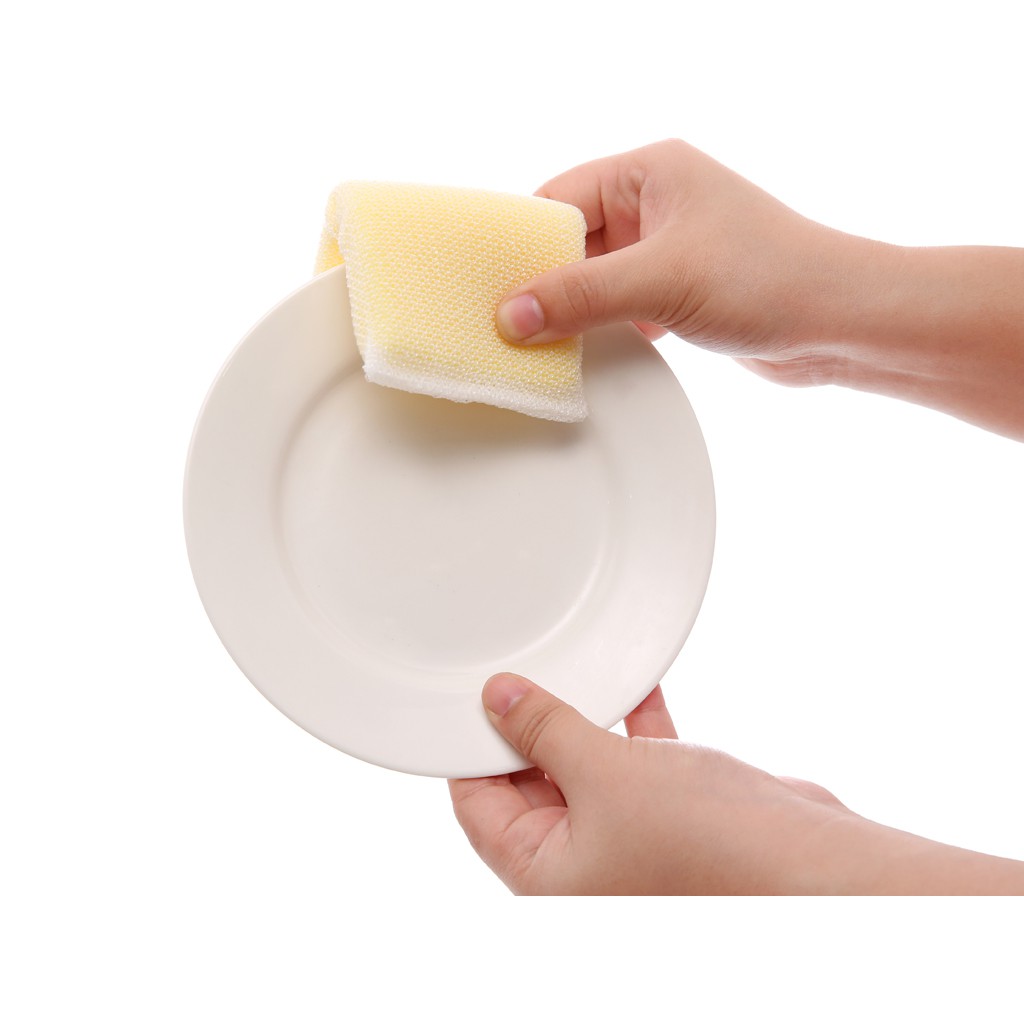 Lưới nhựa và mút đặc cao cấp. Có 2 lớp gồm lớp mút đặc cao cấp bên trong sẽ tạo bọt, giúp rửa được nhiều số lượng chén, đĩa, lớp lưới nhựa bọc bên ngoài