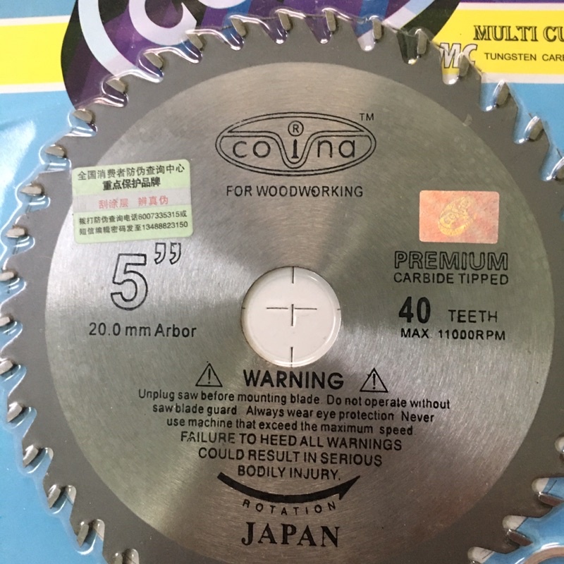 LƯỠI CƯA GỖ COVINA 125MM ( 1 tấc 2 ) 4O RĂNG LOẠI 1Lưỡi cắt gỗ COVINA được thiết kế bằng chất liệu cao cấp và gia công đặc biệt cho khả năng hoạt động mạnh mẽ tạo độ rắn chắc, sắc bén và độ bền tuyệt đối cho sản phẩm. Đây chắc chắn sẽ là dụng cụ hỗ trợ đắc lực phục vụ các công việc của bạn được hiệu quả hơn rất nhiều.