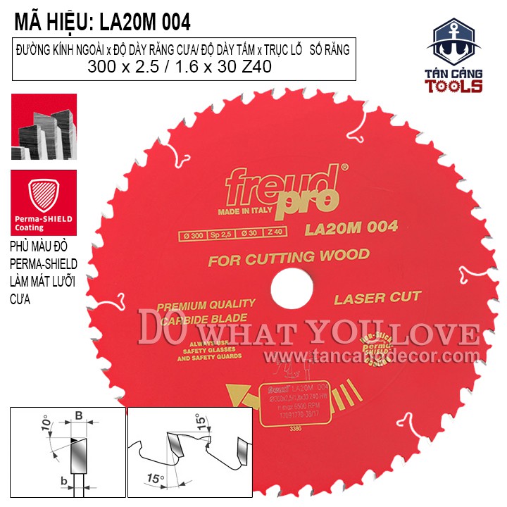 - Lưỡi Cưa Gỗ Hợp Kim 300 x 30 mm x 60T Freud LA30M 003 với trọng lượng nhẹ, được cấu tạo từ hợp kim cứng chịu mài mòn đa góc đem lại hiệu quả công việc cao cưa mịn phôi ván.
